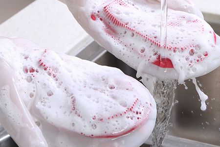 矽膠手套在人們日常生活中又是一個應用非常廣泛的(de)領域,它除了具有防燙、保溫、耐高溫等功(gōng)能外,還可以用來清洗餐具、廚具以及其它家(jiā)務(wù)活的清潔,而且還可以起到勞動保護的作用。有些特製的(de)矽膠手套(tào),在手掌內側采用毛刺形狀設計,不僅可以把掉下來的頭發卷起來,還可(kě)以用來為寵物或嬰兒搓澡,非常實用。